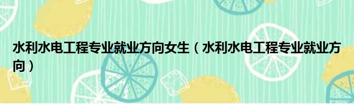 水利水电工程专业就业方向女生(水利水电工程专业就业方向)