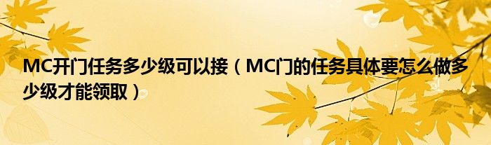 导读 大家好,今天小六子来为大家解答以下的问题,关于MC开门任务多少级可以接,MC门的任务具体要怎么做多少级才能领取这个很多人还不知道,现在