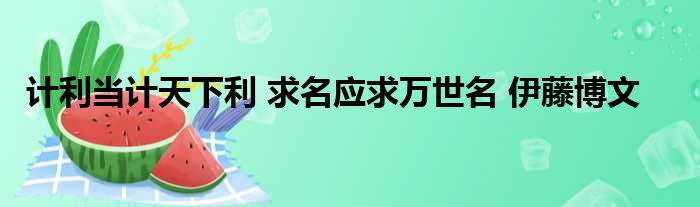 导读 大家好,今天小六子来为大家解答以下的问题,关于计利当计天下利 求名应求万世名 伊藤博文这个很多人还不知道,现在让我们一起来看看吧!1