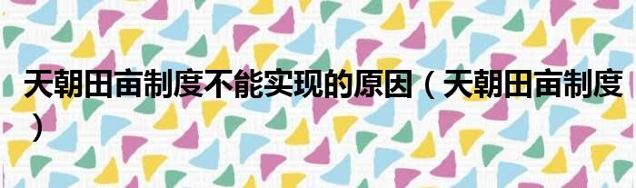 天朝田亩制度不能实现的原因(天朝田亩制度)