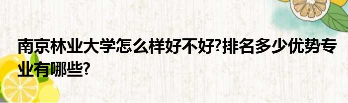 大家好,今天小六子来为大家解答以下的问题,关于南京林业大学怎么样好不好?排名多少优势专业有哪些?这个很多人还不知道,现在让我们一起来看看吧!