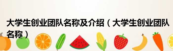 大学生创业团队名称及介绍(大学生创业团队名称)
