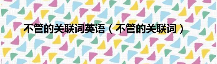 大家好,今天小六子来为大家解答以下的问题,关于不管的关联词英语,不管的关联词这个很多人还不知道,现在让我们一起来看看吧!