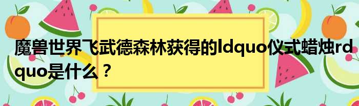 魔兽世界飞武德森林获得的ldquo仪式蜡烛rdquo是什么?
