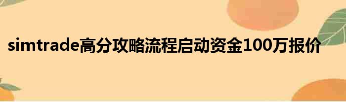 导读 大家好,今天小六子来为大家解答以下的问题,关于simtrade高分攻略流程启动资金100万报价这个很多人还不知道,现在让我们一起来看看吧!1、