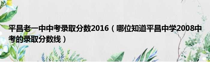 导读 大家好,今天小六子来为大家解答以下的问题,关于平昌老一中中考录取分数2016,哪位知道平昌中学2008中考的录取分数线这个很多人还不知道,