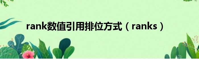 大家好,今天小六子来为大家解答以下的问题,关于rank数值引用排位方式,ranks这个很多人还不知道,现在让我们一起来看看吧!