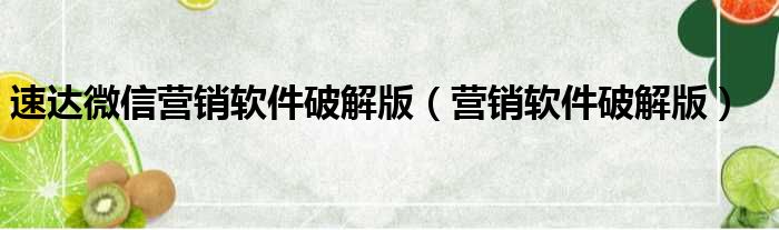 导读 大家好,今天小六子来为大家解答以下的问题,关于速达微信营销软件破解版,营销软件破解版这个很多人还不知道,现在让我们一起来看看吧!1、