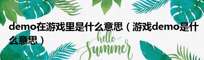 demo在游戏里是什么意思(游戏demo是什么意思)