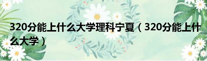 导读 大家好,今天小六子来为大家解答以下的问题,关于320分能上什么大学理科宁夏,320分能上什么大学这个很多人还不知道,现在让我们一起来看看