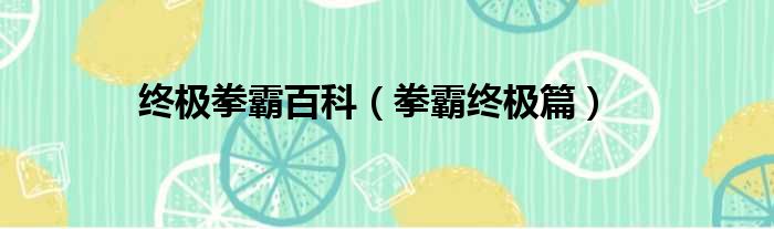 大家好,今天小六子来为大家解答以下的问题,关于终极拳霸百科,拳霸终极篇这个很多人还不知道,现在让我们一起来看看吧!