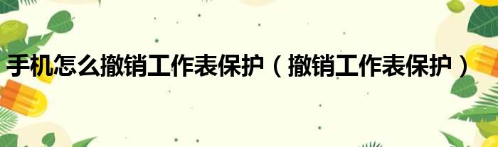 导读 大家好,今天小六子来为大家解答以下的问题,关于手机怎么撤销工作表保护,撤销工作表保护这个很多人还不知道,现在让我们一起来看看吧!1、