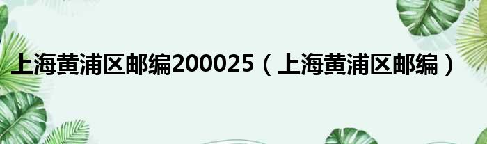 上海黄浦区邮编200025(上海黄浦区邮编)