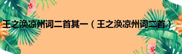 王之涣凉州词二首其一(王之涣凉州词二首)