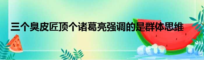 大家好,今天小六子来为大家解答以下的问题,关于三个臭皮匠顶个诸葛亮强调的是群体思维这个很多人还不知道,现在让我们一起来看看吧!