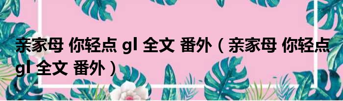 导读 大家好,今天小六子来为大家解答以下的问题,关于亲家母 你轻点 gl 全文 番外,亲家母 你轻点 gl 全文 番外这个很多人还不知道,现