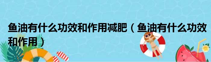 鱼油有什么功效和作用减肥(鱼油有什么功效和作用)