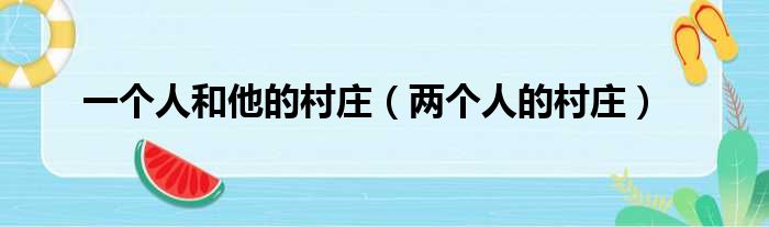 大家好,今天小六子来为大家解答以下的问题,关于一个人和他的村庄,两个人的村庄这个很多人还不知道,现在让我们一起来看看吧!