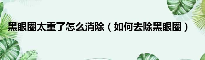 黑眼圈太重了怎么消除(如何去除黑眼圈)