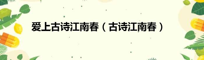 大家好,今天小六子来为大家解答以下的问题,关于爱上古诗江南春,古诗江南春这个很多人还不知道,现在让我们一起来看看吧!