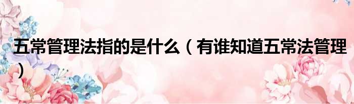 大家好,今天小六子来为大家解答以下的问题,关于五常管理法指的是什么,有谁知道五常法管理这个很多人还不知道,现在让我们一起来看看吧!