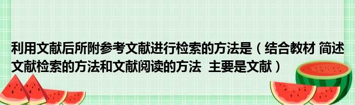 利用文献后所附参考文献进行检索的方法是(结合教材 简述文献检索的方法和文献阅读的方法 主要是文献)
