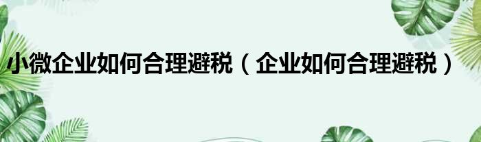 小微企业如何合理避税(企业如何合理避税)