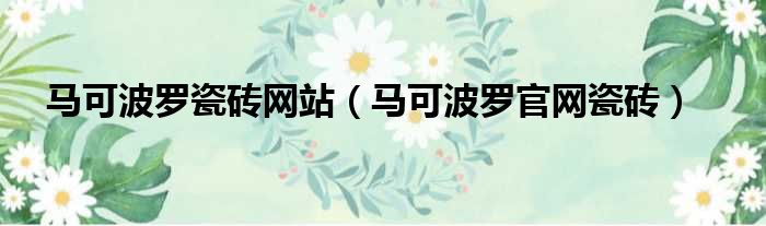 导读 大家好,今天小六子来为大家解答以下的问题,关于马可波罗瓷砖网站,马可波罗官网瓷砖这个很多人还不知道,现在让我们一起来看看吧!1、马可