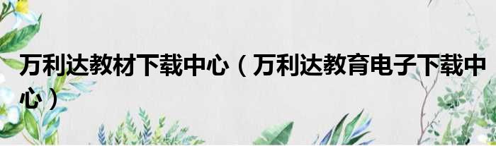 导读 大家好,今天小六子来为大家解答以下的问题,关于万利达教材下载中心,万利达教育电子下载中心这个很多人还不知道,现在让我们一起来看看吧