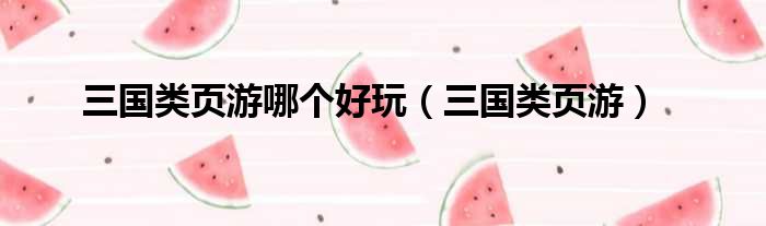 三国类页游哪个好玩(三国类页游)