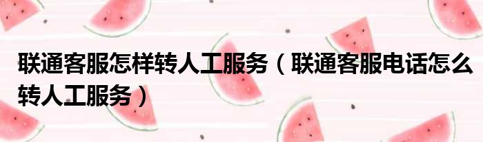 联通客服怎样转人工服务(联通客服电话怎么转人工服务)