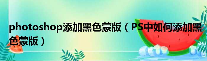 photoshop添加黑色蒙版(PS中如何添加黑色蒙版)
