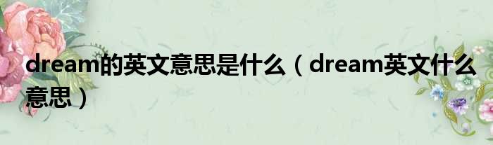 导读 大家好,今天小六子来为大家解答以下的问题,关于dream的英文意思是什么,dream英文什么意思这个很多人还不知道,现在让我们一起来看看吧!1