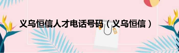 大家好,今天小六子来为大家解答以下的问题,关于义乌恒信人才电话号码,义乌恒信这个很多人还不知道,现在让我们一起来看看吧!