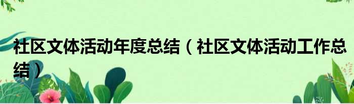 大家好,今天小六子来为大家解答以下的问题,关于社区文体活动年度总结,社区文体活动工作总结这个很多人还不知道,现在让我们一起来看看吧!