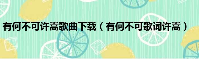 有何不可许嵩歌曲下载(有何不可歌词许嵩)