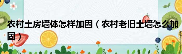 农村土房墙体怎样加固(农村老旧土墙怎么加固)
