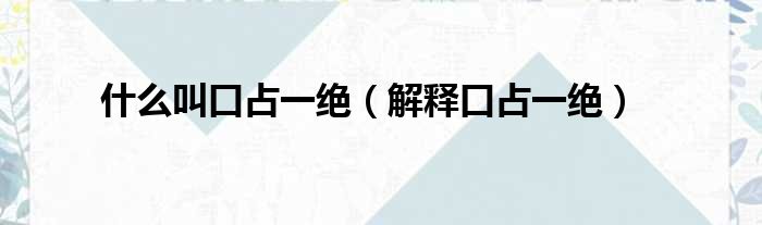 导读 大家好,今天小六子来为大家解答以下的问题,关于什么叫口占一绝,解释口占一绝这个很多人还不知道,现在让我们一起来看看吧!1、读第一声zh