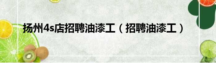 导读 大家好,今天小六子来为大家解答以下的问题,关于扬州4s店招聘油漆工,招聘油漆工这个很多人还不知道,现在让我们一起来看看吧!1、份人不能