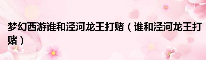 导读 大家好,今天小六子来为大家解答以下的问题,关于梦幻西游谁和泾河龙王打赌,谁和泾河龙王打赌这个很多人还不知道,现在让我们一起来看看吧