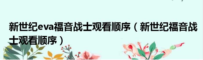 导读 大家好,今天小六子来为大家解答以下的问题,关于新世纪eva福音战士观看顺序,新世纪福音战士观看顺序这个很多人还不知道,现在让我们一起来