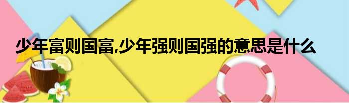 导读 大家好,今天小六子来为大家解答以下的问题,关于少年富则国富,少年强则国强的意思是什么这个很多人还不知道,现在让我们一起来看看吧!1、