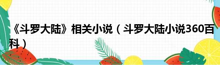 导读 大家好,今天小六子来为大家解答以下的问题,关于《斗罗大陆》相关小说,斗罗大陆小说360百科这个很多人还不知道,现在让我们一起来看看吧!