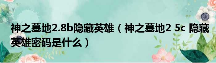 神之墓地2.8b隐藏英雄(神之墓地2 5c 隐藏英雄密码是什么)