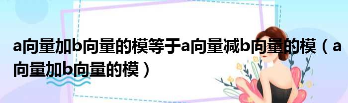 导读 大家好,今天小六子来为大家解答以下的问题,关于a向量加b向量的模等于a向量减b向量的模,a向量加b向量的模这个很多人还不知道,现在让我们