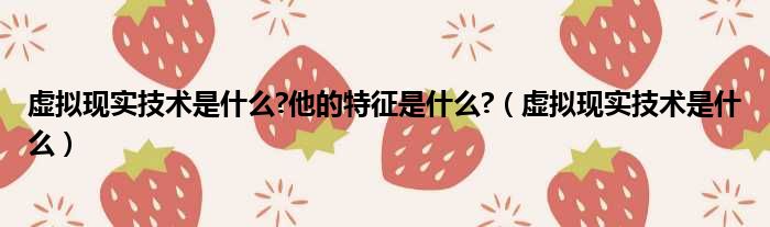 虚拟现实技术是什么?他的特征是什么?(虚拟现实技术是什么)