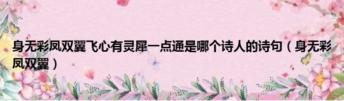 身无彩凤双翼飞心有灵犀一点通是哪个诗人的诗句(身无彩凤双翼)
