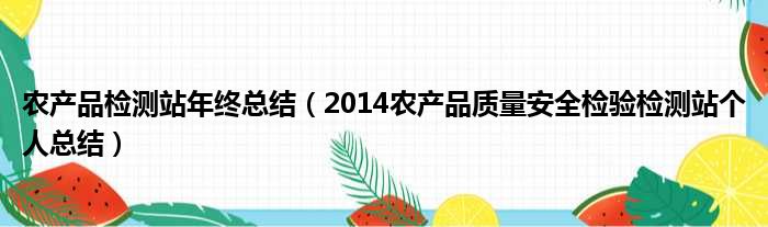 农产品检测站年终总结(2014农产品质量安全检验检测站个人总结)