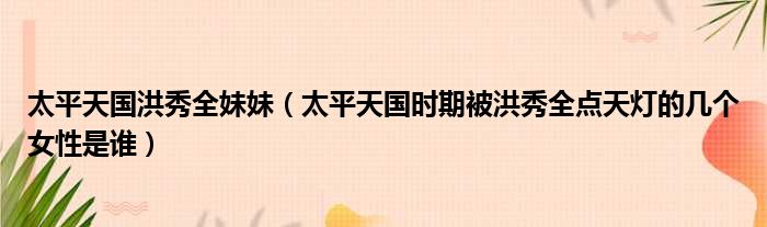 导读 大家好,今天小六子来为大家解答以下的问题,关于太平天国洪秀全妹妹,太平天国时期被洪秀全点天灯的几个女性是谁这个很多人还不知道,现在