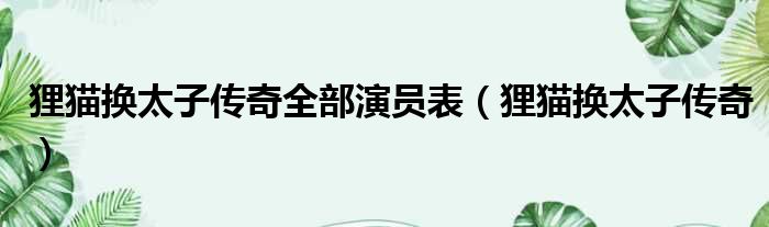 导读 大家好,今天小六子来为大家解答以下的问题,关于狸猫换太子传奇全部演员表,狸猫换太子传奇这个很多人还不知道,现在让我们一起来看看吧!1